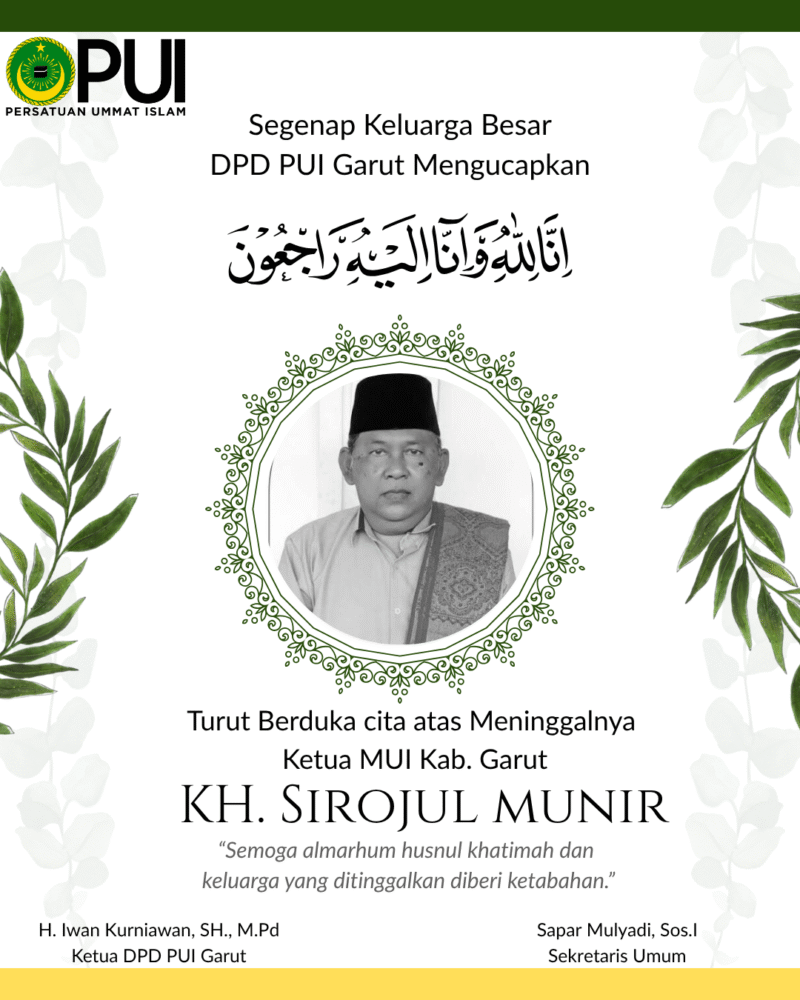 Melalui pernyataan resmi, Ketua DPD PUI Garut H. Iwan Kurniawan, SH., MPd menyampaikan belasungkawa atas berpulangnya KH. Sirojul Munir, seraya mengenang sosoknya sebagai ulama yang teduh, bersahaja, dan konsisten menjaga keutuhan umat dalam bingkai kebangsaan.